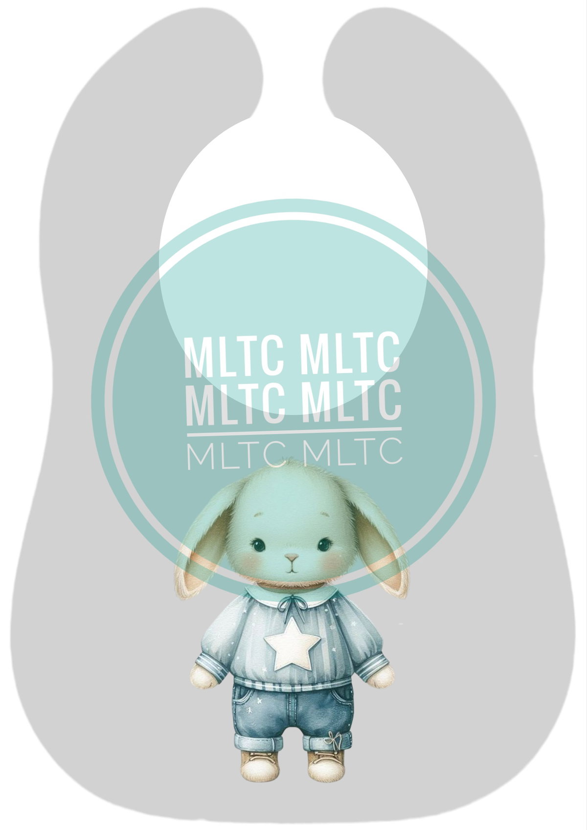 Consta de dos telas una con babero de unos 27x18 cm aprox y otra con el porta y cubre chupete haciendo juego.