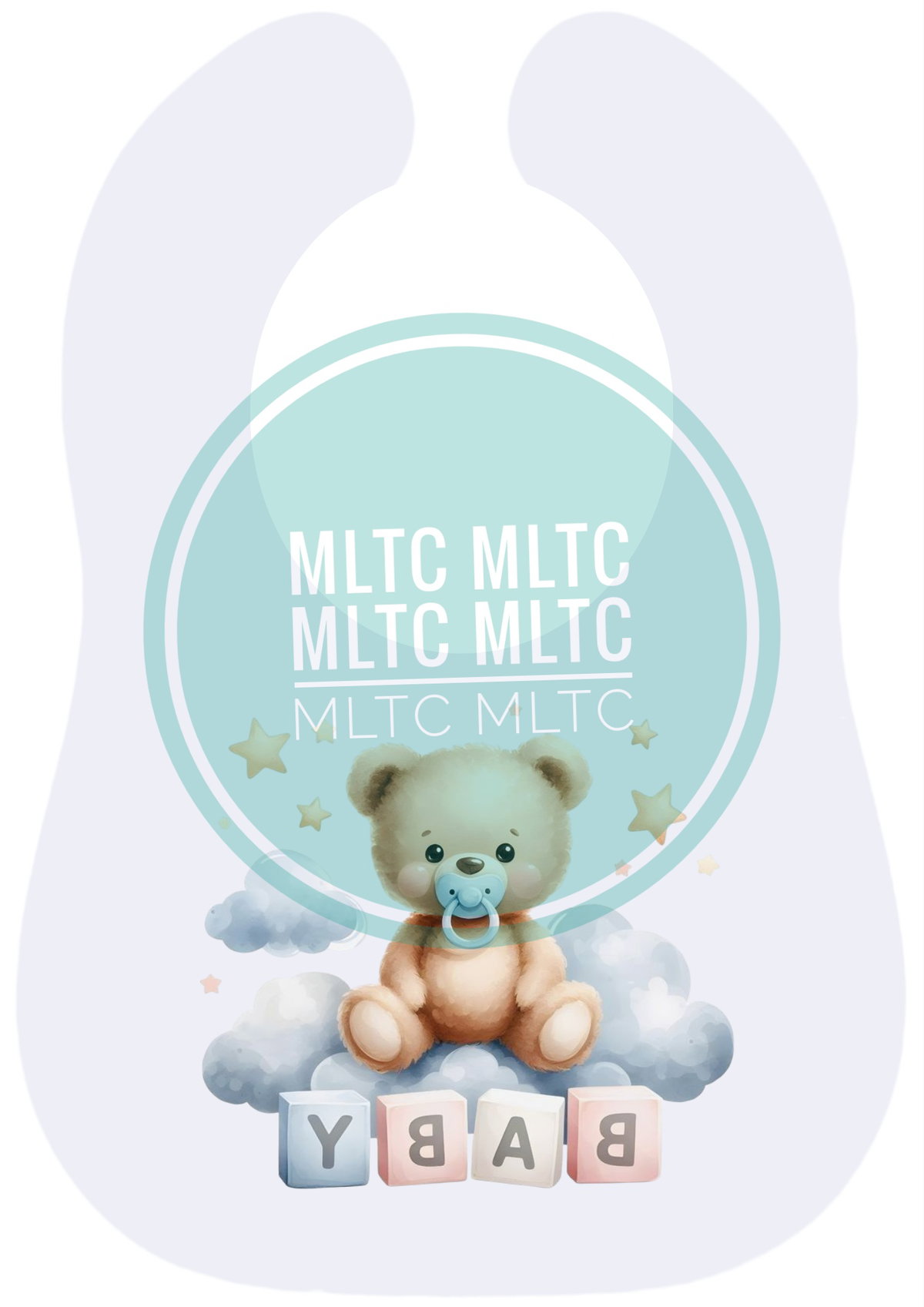 Consta de dos telas una con babero de unos 27x18 cm aprox y otra con el porta y cubre chupete haciendo juego.